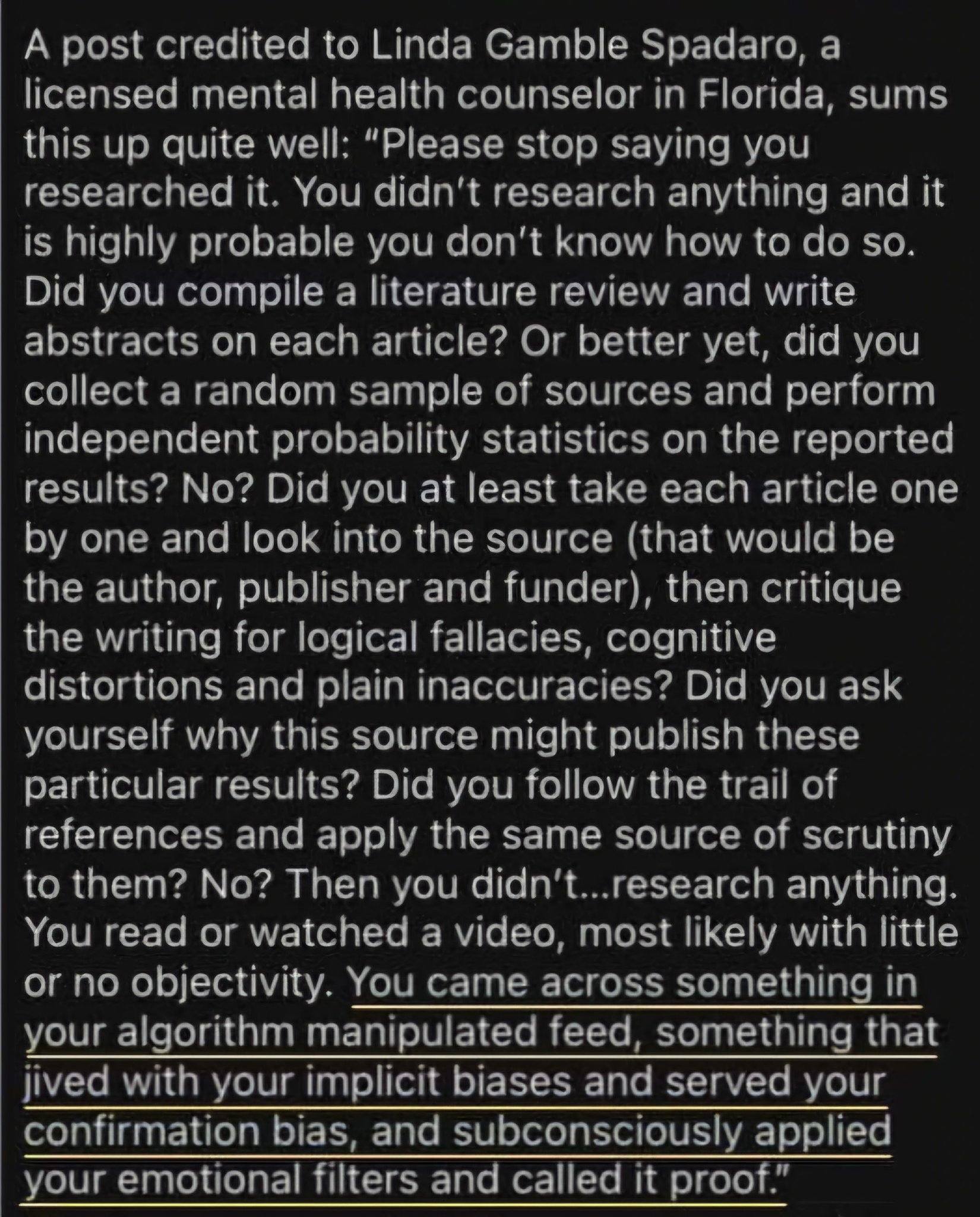 “Please stop saying you researched it.”