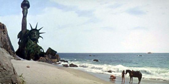 “Planet of the Apes” (1968) is a half century old; today is the 50th anniversary of the film’s premiere at the Capitol Theater in Manhattan. (Thanks to Blog Correspondent Pete Harrison for pointing out the date for us.) The movie’s original trailer is below. I actually learned something new looking for it — Rod Serling co-wrote the screenplay. (I wasn’t aware of that, but it makes sense.)